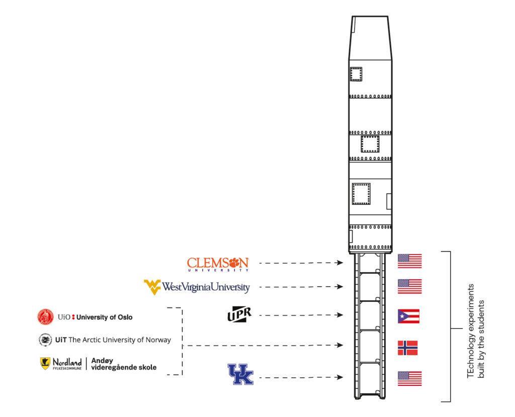 I raketten er det satt av plass til de ulike universitetene hvor de kan plassere innretningene sine. Til forskjell fra de amerikanske studentene som skulle plassere sine instrumenter direkte inn i raketten, fikk de norske studentene mulighet til ha instrumenter i en CubeSat, en liten satellitt som skal skytes ut av raketten oppe i atmosfæren (mer om CubeSat i neste artikkel).