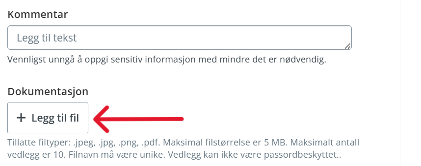 9. Last opp dokumentasjon og eventuelt andre vedlegg.